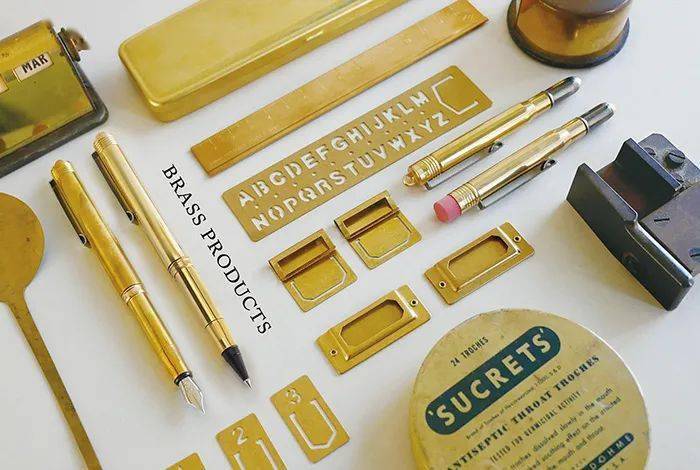 除了经典耐用的牛皮材质的手账本,还有各种各样功能和大大不一的黄铜配件,也是完完全全的复古味道。