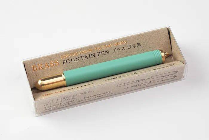 钢笔采用淡绿色与黄铜的搭配,有着特别的美感,是设计师受到了工厂内淡绿色架子、门窗等物品的启发,多年来,工厂的陈设渐渐褪色、变得破旧,却变成盛满时间和回忆的载体。